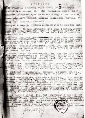 012. Приговор, Новосибирск, 9–10 февраля 1941