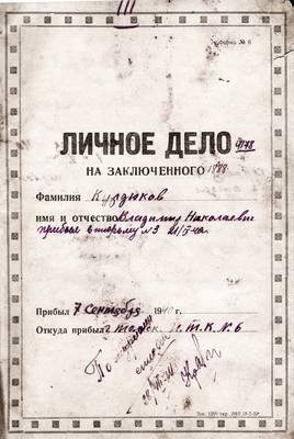 001. Личное дело на заключенного: Курдюков Владимир Николаевич. Титульный лист