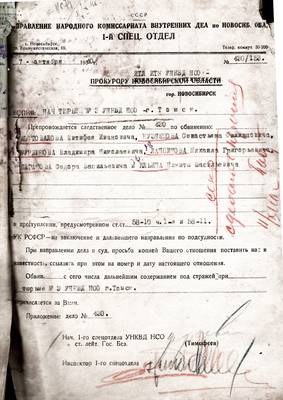 7 октября 1940 года дело Курдюкова (следственное дело № 430) перечислили за Прокурором ИТЛ ИТК УНКВД по НCО. В следственном деле были указаны шесть человек обвиняемых.