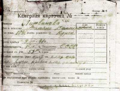 Источн.: Архивное дело з/к Т.Д. Ливиновой // Архив Мемориального музея «Следственная тюрьма КВД»