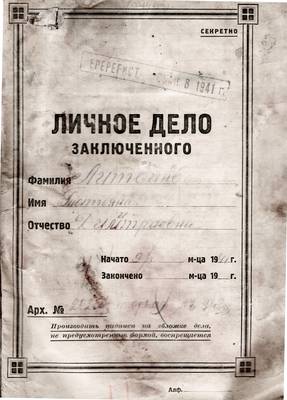 - Обложка личного дела заключенного: Литвинова Татьяна Дмитриевна. 1941–1942.