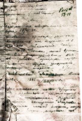 На основании приказа за № 0454(?) и распоряжения нач. тюрьмы № 3 УНКВД НСО Лейтенанта Госбезопасности тов. Божок, мной врачом [Пе]ченкиной в присутствии ДПН тов. Гребнева произведен наружный осмотр трупа умершего в тюремной больнице Литвиновой Татьяны Дмитриевны, 1886 г. рождения.