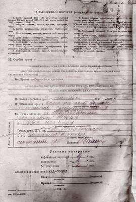 - Анкета арестованного. ДПЗ НГО НКВД г. Новочеркасск, сентябрь 1941 г.