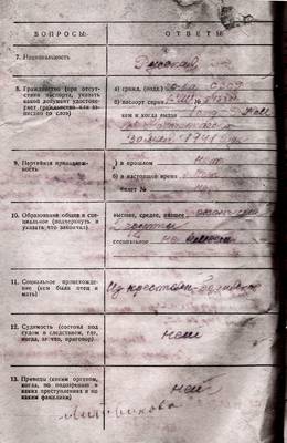 Передавать анкету для заполнения арестованному запрещается. Заполняется со слов арестованного и проверяется по документам.