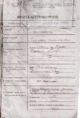 АНКЕТА АРЕСТОВАННОГО