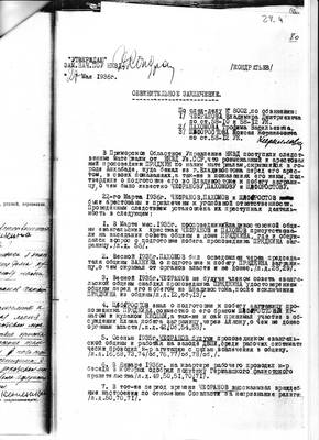 27-4. Обвинительное заключение Приморского отделения Управления НКВД от 27.05.1936 по обвинению Чефранова В.Д., Пахомова Т.В. и Шафоростова М.К.