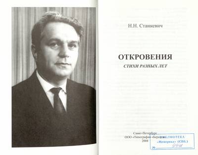 21. "A Word from the Author" in the book by Stankevich N.N. "Revelations: Poems from Different Years", St. Petersburg: Type. "Beresta", 2008, pp. 2-11, about the fate of his parents, about his imprisonment and about his theatrical and musical activities. (6 p., typographic edition)