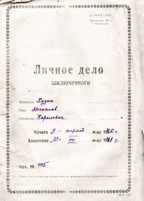 - Personal file of prisoner Khudik Mechislav Karlovich. File cover.