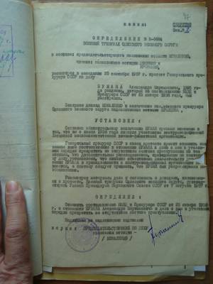 23. Determination No. N-0684 of the Military Tribune of the Odessa Military District No. 4n-013430 / 57 dated 09/20/1957 on the abolition of the decision of the NKVD and the USSR Prosecutor dated 01/25/1938 in relation to Buman A.M.