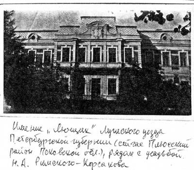 12. Photograph of the Lyushchik estate, Luga district (now Plyussky district, Pskov region) (0.25 sheet, photocopy).