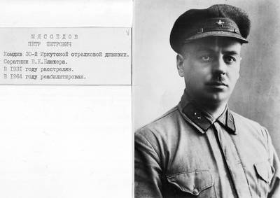 1. Photo Myasoedov P.P. with a brief biographical note. Fragment of the "Wall of Memory". (1 sheet, photocopy, typescript)