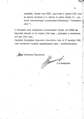 20.1. Letter from the Federal Security Service of the Russian Federation for the Saratov region. dated March 23, 2001 to the director of the Memorial Research Center V.V. Iofe (response to request No. 168 dated March 13, 2001) about the lack of information about S.N. Markaryan.
