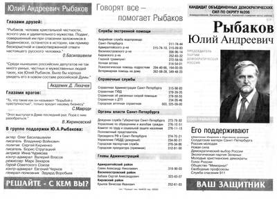 9. Article by Rybakov Yu.A. “I’ll say a word about the Poor State Duma, because you won’t get anything like that from others,” “Evening Petersburg” 05/20/1994.