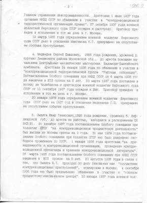 93. Letter from the Central Administration of the FSB of the Russian Federation No. 10 / A-2954 dated 06.28.1996. (response to request No. 29 of 03.02.1996) St. Petersburg Research Center "Memorial" that the investigation file against Osinovsky N.I. was sent to the department for the rehabilitation of victims of political repression Gen. prosecutor's office of the Russian Federation.