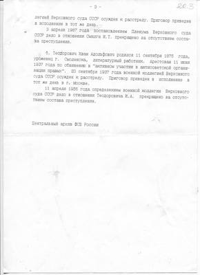 206-1. Letter from the Central Administration of the FSB of the Russian Federation No. 10 / A-6370 dated 12/31/1996 (reply to No. 313 dated 01.11.1996) to the director of the Memorial Research Center Iofe V.V. on the available information on Chudov M.S., Shaposhnikova L.K.