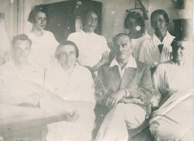 1. Group photo of employees of the laboratory of the parasitic typhus department of the Institute named after. Pasteur, headed by Filipchenko A.A. (in the center), to the right of it is Peak E.M. and Dansker V.N.; Leningrad, 1920-1930s.
