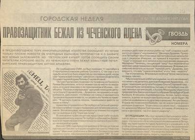 1. Article by Rovda B. “A human rights activist escaped from Chechen captivity” in the newspaper “Petrovsky Kurier” 12/30/1997