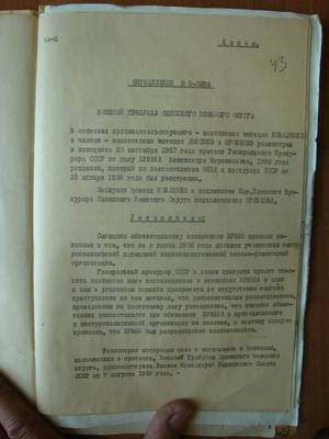 31. Determination of the Military Tribune of the Odessa Military District No. 4n-023832 / 56 of 06/06/1957 on the abolition of the decision of the NKVD and the USSR prosecutor of 05/25/1938 in relation to Dekter Ya.I.