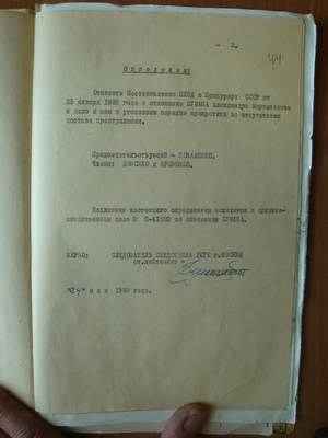 25. Determination of the Military Tribunal of the Moscow Military District No. 2175 / D of 08/26/1957 on the abolition of the decision of the NKVD of the USSR and the Prosecutor of the USSR of 03/23/1938 in relation to Elbur I.I.