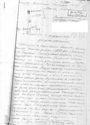 1. Draft statement of Torf I.F. dated 03/11/1938 addressed to the People's Commissar of Internal Affairs N.I. Yezhov, with a request to review the case of his brother S.F. Torf.