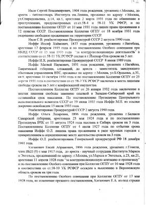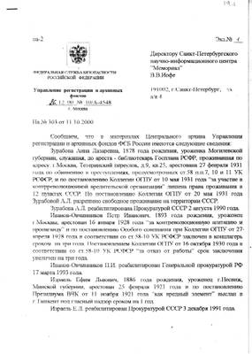 19. Letter of the Department of Registration and Archival Funds of the Federal Security Service of the Russian Federation No. 10 / A-4548 dated 12/26/2000 to the director of the Memorial Research Center V.V. e I.Kh., Ioffe M.N., Ioffe O.L. and Kaganovich E.A.