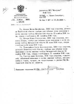 3. Letter from the Internal Affairs Directorate of the Magadan Region. No. 3/T-26 dated 09/13/2000 to the Director of the Memorial Research Center V.V.