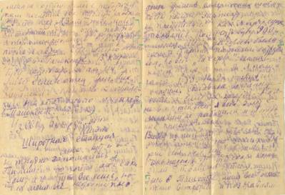 24. Letter from Leman-Balanovskaya I.N. dated 26.02.1943 from the city of Pskent, Tashkent region, Uzbekistan, to the wife of Leman's brother A.A. in Leningrad about her work as a nanny and housekeeper, about an invitation to work in Verkhoturye and about the lack of warm clothing; a homemade envelope with the stamp "Reviewed by military censors" (p/w 03.03.1943/06.04.1943).