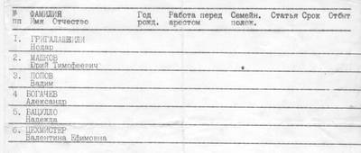 Genus. in 1937 in Ramensky district, village of Klishevo, Moscow region; Russian; b/p; Linotypist student at the Centrsoyuz printing house. Lived in the Moscow region, Klishevo village, Oktyabrskaya street, 99. Arrested on November 27, 1958 for participating in an underground student group of anarcho-communist direction. Sentenced by the Moscow City Court on May 14, 1959 under Art. 7 part 1, 9 of the USSR Law “On Criminal Liability for State Crimes” of December 25, 1958 (dissemination of deliberately false fabrications discrediting the Soviet political system) to imprisonment for a period of 7 years. Pardoned by the Resolution of the Presidium of the Supreme Soviet of the RSFSR. Released on October 25, 1965.In 1966 tried together with his wife, half-brother and I.V. Ovchinnikov flee from the USSR to Finland. Served his sentence in 1966-1976. in ZH-385, VS-389/35. Signed a letter in defense of A.I. Ginzburg in 1977 In 1978 emigrated. Lived in Rome, then in the USA.