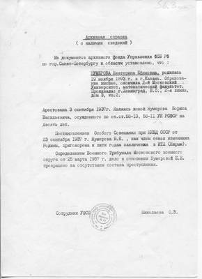 Genus. 01/29/1891 in Novgorod; Russian; b/p; Graduated from the Faculty of Physics and Mathematics of Leningrad University. Director of the Astronomical Institute of the People's Commissariat for Education. Lived in Leningrad, V.O., 2nd line, no. 3, apt. 2. Arrested on October 21, 1936 by the NKVD for the Leningrad Region. He was accused of being the initiator of the creation and one of the leaders of a fascist terrorist group. 05/25/1937 The Military Collegium of the Supreme Court of the USSR sentenced to 10 years in prison followed by loss of rights for 5 years. In custody in the Oryol prison. Sentenced by the Supreme Court of the USSR on September 13, 1941 under Art. 58-10, part II of the Criminal Code of the RSFSR to the VMN. 09/15/1941 shot in Orel. Rehabilitated by the decision of the Military Collegium of the Supreme Court of the USSR dated May 11, 1957.