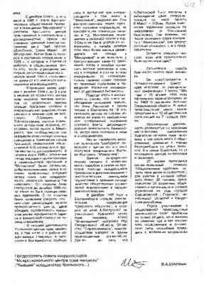 15. Interview of A. Kiva with V.A. Shaklein “Dissidents continue and...”, published in “Our City Newspaper” (Ekaterinburg), No. 49 dated December 5, 1996.