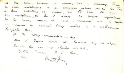 1. Letter from Kulik P.Ya. dated 04/20/1991 Cherkasova V.D. about his arrests in 1952 and 1959, about his stay in prison, about his acquaintance with R.I. Pimenov. and Mitreykin V.K.