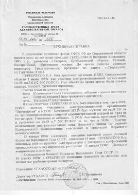3.4. Archival certificate No. 222 dated 05/10/2000 on Serebryakov V.A.