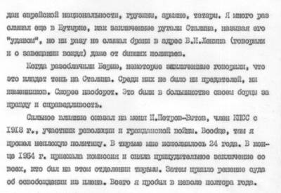 32. A fragment of an interview with Zinaida Nemtsova, published in the magazine “Ogonyok” No. 27 for July 1988, about the XVIII Congress of the CPSU (b) and Pavel Bulat,
