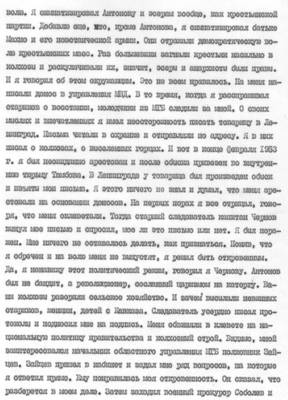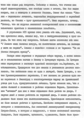 At the beginning of his memoirs, he depicts the work of the repressive apparatus in Leningrad, which acquired especially menacing proportions after the death of S.M. Kirov. Author's letter to I.V. Stalin in 1937 with a question about the reasons for "the murder of the best communists, Bolsheviks, Komsomol members." A story about a Leningrad apartment on Nevsky Prospekt, where there was a hangout for the NKVD. About the famine of 1932, about the very difficult situation of his brothers, about his trip to Rostov in connection with this, where he saw "a terrible tragedy of the people." To save relatives, a device in Maikop in the laboratory of a flour mill. Description of terrible pictures in the besieged Leningrad. Shortly after the arrest, the sentence was 10 years in prison. Prison "Crosses". The cell, where there are about a hundred prisoners. According to the author, "there were 15-20 cannibals in it." (Was there really such a thing, or is there some exaggeration or even gloomy fantasy in some of the facts cited? Like, for example, the mention that the cells were not locked and the prisoners could walk freely along the corridors, and some went up to the dome and threw themselves down, committing suicide. - Ed.)