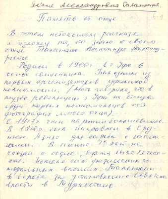 5. Biographical information about Talankin A.A. “Memory of the Father”, written by Talankina N.A.