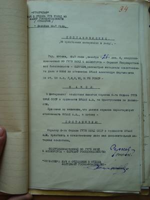 16. Resolution of the 5th department of the UGB UNKVD MO dated December 26, 1937 on the inclusion of A.M. Buman in case No. 8086. certificate from the 8th department of the GUGB NKVD of the USSR about the criminal record of A.M. Buman. for a crime in office.