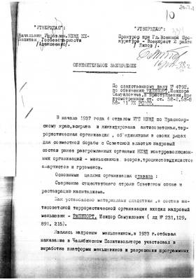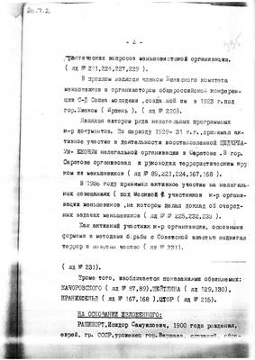19-3. The indictment of the UGB NKVD for the Krasnoyarsk Territory dated 07/11/1938 in relation to Rapiport I.S. (attachment to letter No. 10/245 dated 08.25.1998).