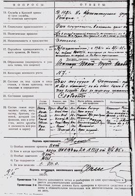 7. Questionnaire of the arrested UNKVD LO, filled out for Edel U.M. 02/08/1935 [sheets of arch. cases – 5, 5ob].