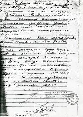 6. A copy of the protocol of interrogation Yatskevich V.I. held in the Petrograd Provincial Extraordinary Commission for the fight against counter-revolution 04/29/1922.