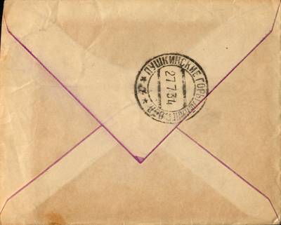 7. Letter from Leman-Balanovskaya I.N. dated 25.07.1934 to the wife of Leman's brother A.A. in Pushkinskiye Gory about an upcoming trip to Crimea; envelope with notes from Zvorykina N.F. (p/w 26.07.1934/27.07.1934).