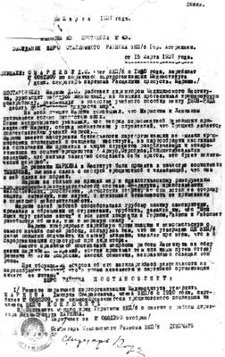 3. Order of the People's Commissariat of Health of the RSFSR No. 93 dated January 31, 1936 on the appointment of D.S. Markin. Director of the Astrakhan Medical Institute from 01/10/1936.