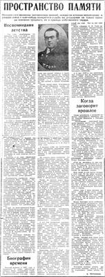 15. Статья В. Черемных «Пространство памяти» в газете «Приазовский рабочий» № 248 от 26.12.1987 о судьбе бригадного комиссара Балтийского флота Горба И.В. и членах его семьи.