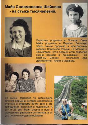 1. Фрагменты книги "Майя Соломоновна Шейнина - на стыке тысячелетий", подготовленной близкими к ее юбилею, с воспоминаниями Шейниной М.С. о родителях и сестре, с фотографиями и документами, после 2004 г.