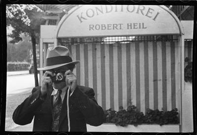 16. Фотография Хенкина Е.А., фотографирующего на улице немецкого города.