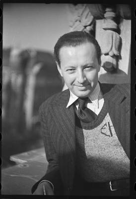 – Links en rechts zijn leerlingen K. Tscharikoff en E. Henkin e naan den vleugel Prof. Lewin.