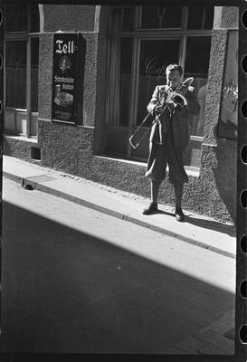 15. Фотография Хенкина Е.А., играющего на тромбоне на улице немецкого города.