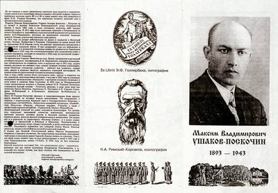 2. Буклет на выставках художника Ушакова-Поскочина М.В., состоявшихся в Санкт-Петербургском Союзе художников в 1994 г., в обществе «Мемориал» в мае 2003 и в Академии художеств в декабре 2003 г., с сопроводительным текстом искусствоведа Стрижака Н.