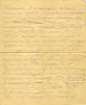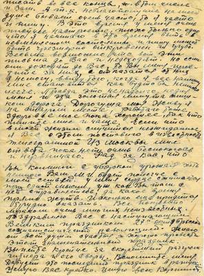 47. Письмо Цыганова К.А. (март-февраль 1944) из пос. Красный Камень, г. Нижний Тагил Свердловской области, жене Цыгановой А.И. с поздравлениями по поводу ее дня рождения, о сожалениях, что его в этот день нет рядом, о необходимости операции, о плохом самочувствии и упадке сил, и об отсутствии писем.