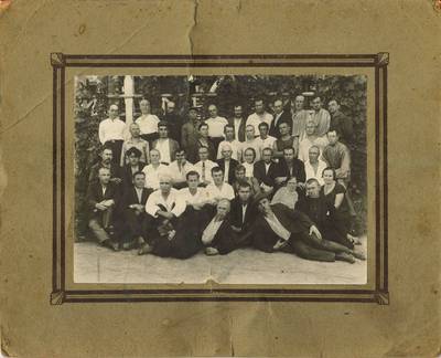 145. Групповая фотография отдыхающих на курорте, Цыганов К.А. - в первом ряду крайний слева; оз. Шира, Хакасия, август 1931 г.