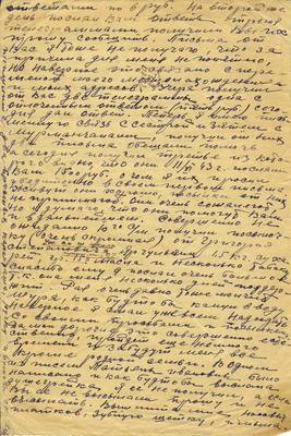 91. Фрагмент письма Цыганова К.А. от ноября 1944? из пос. Красный Камень, г. Нижний Тагил Свердловской области, жене Цыгановой А.И. о новостях, полученных от родственников и о приближении холодов.